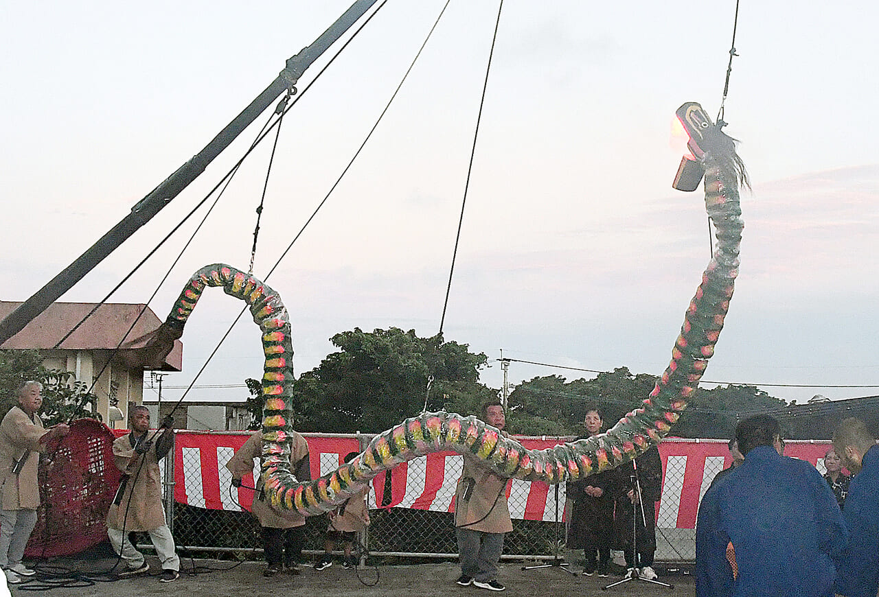 「上平川大蛇踊り」で知られています。この踊りは県の無形民俗文化財に指定されており、旧暦の9月15日に殿智(とぅぬち)神社で奉納祭が毎年行われます。